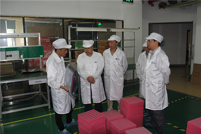 周国辉书记一行依次参观了先芯科技的仓库、SMT车间、DIP车间、RF屏蔽房、测试线等生产现场,深入了解了先芯科技生产的智能三表模块、物联网无线收发器等产品的生产过程和工艺工程,充分肯定了先芯科技的硬件设备、生产能力和品质管理理念。